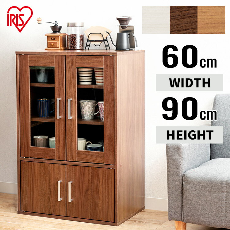 ガラスキャビネット GKN-9060 オフホワイト・ナチュラル・ウォールナット送料無料 木目調 食器・・・
