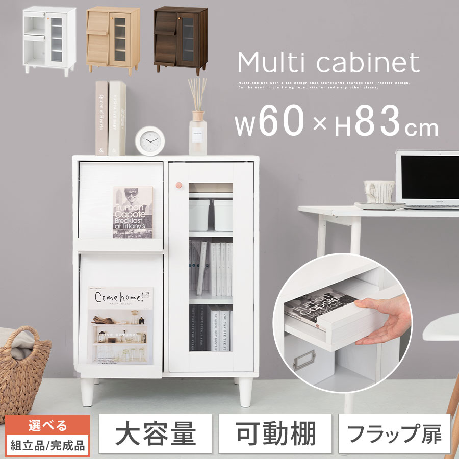 【クーポンで10%OFF!11/27迄】 キャビネット 収納 フラップ扉 ガラス扉 約 幅60cm ・・・