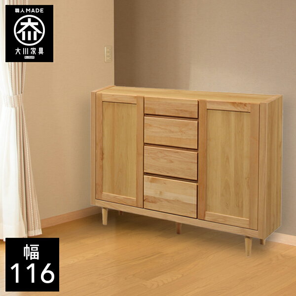 【開梱設置送料無料】 幅116cm サイドボード キャビネット 脚付き 天然木 リビング収納 リビン・・・