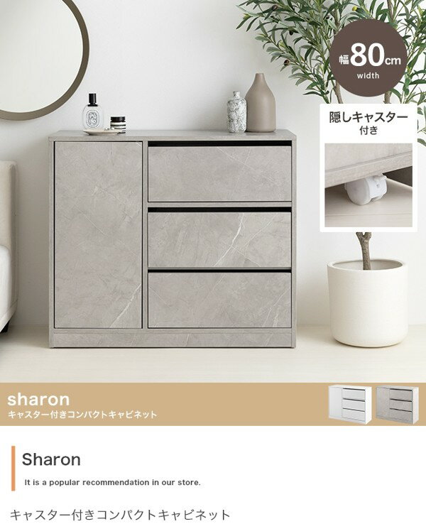 キャビネット チェスト 収納 幅80 3段 タンス 引き出し キャスター付き コンパクト 木製 白 ・・・