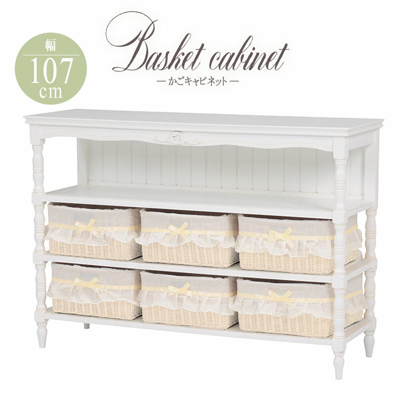 キャビネット バスケット6個付き 引出し 幅107cm 棚 引き出し 内布付き リビングボード 電話・・・