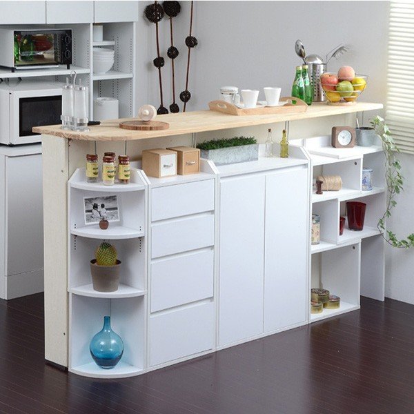 送料無料 カウンター下収納 4点セット 薄型 ミニ キャビネット 両扉 付き チェスト 伸縮ラック ・・・