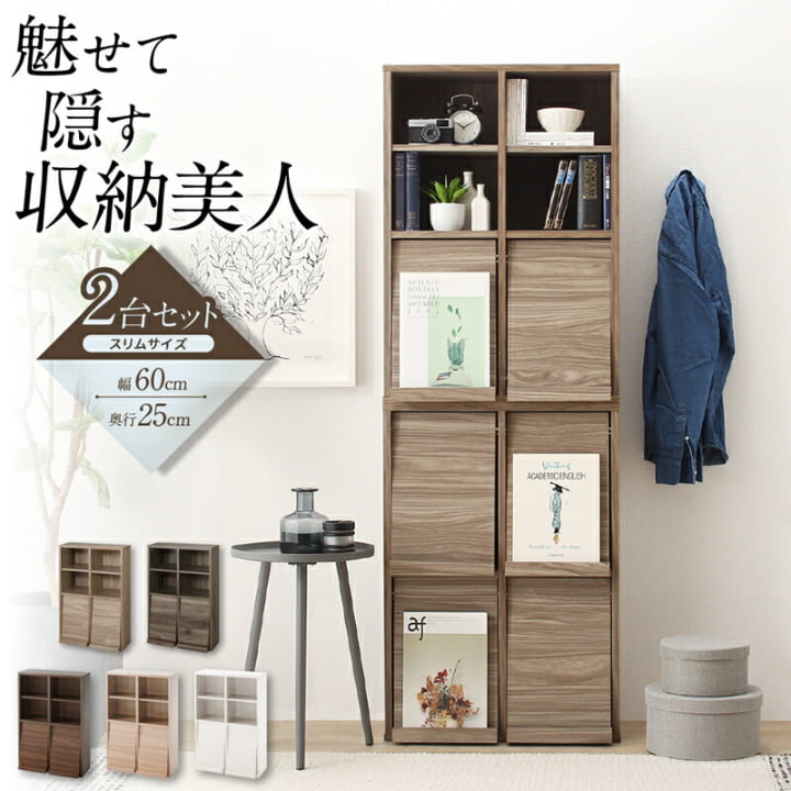 本棚 2個組セット スリム 幅60cm 奥行25 扉付き 北欧 おしゃれ ブックシェルフ 絵本棚 書・・・