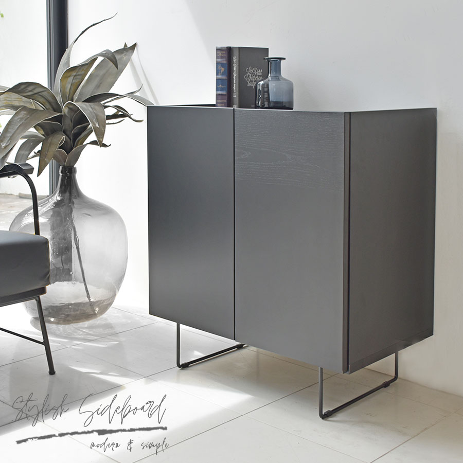 キャビネット サイドボード 75cm 収納棚 リビング 収納 ナチュラル 木製 ブラック 脚付き ス・・・
