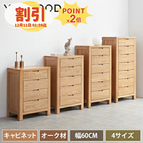 【10%以上OFF+P2倍】タンス 幅60cm 木製 オーク材 無垢材 キャビネット 引出し4/5/・・・