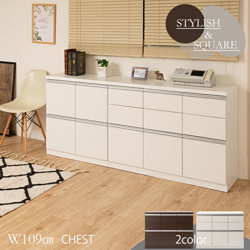 【JUCEE】シリーズ スクエアキャビネット幅109 引出しタイプ ホワイト ブラウン モダン 家具・・・
