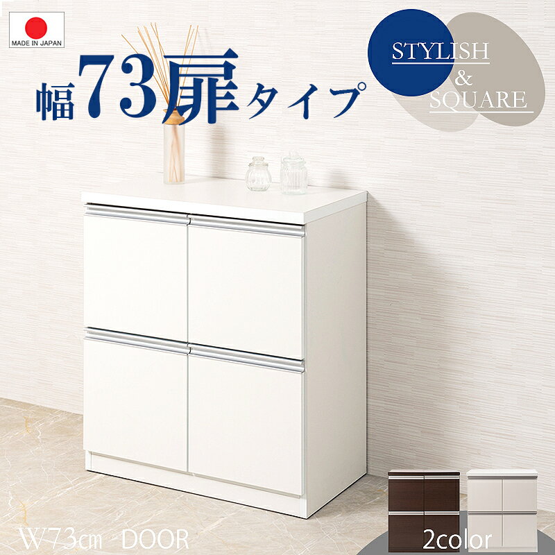 【 幅73 扉タイプ 】【完成品 日本製 】収納 チェスト ホワイト ブラウン ミッドセンチュリー ・・・
