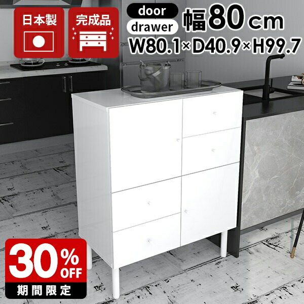 チェスト 北欧 キャビネット 白 完成品 収納棚 棚 扉付き サイドボード ホワイト 鏡面 脚付き ・・・