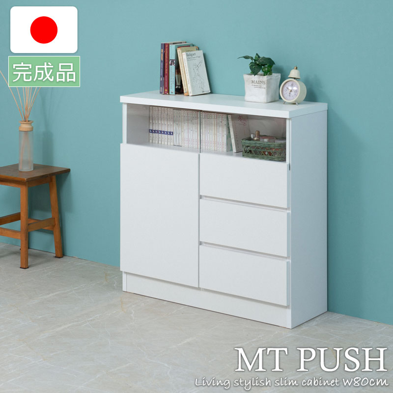 【MTpush】幅79 奥行29.5 高さ80 リビングボード 扉+引出しタイプ ホワイト日本製 完・・・