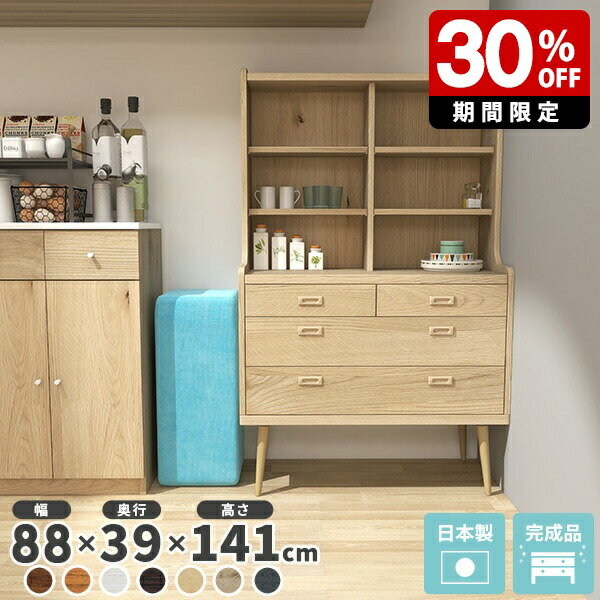 キャビネット 90 北欧 食器棚 リビング収納 完成品 棚 収納 キッチンキャビネット 引き出し リ・・・