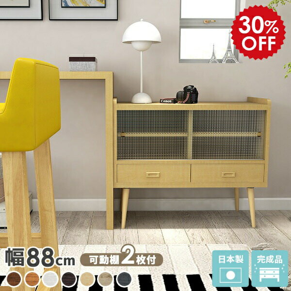 食器棚 完成品 飾り棚 キャビネット 北欧 おしゃれ カップボード ロータイプ 棚 ガラス扉付き 引・・・