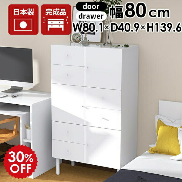 【G-selle】薄型リビングボード 幅79 奥行30 扉引出しタイプ サイドボード キャビネット ・・・
