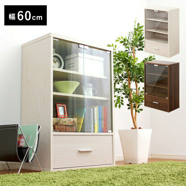 ガラスキャビネット 木製 おしゃれ 北欧 本棚 ガラス 扉付き 扉 棚 スリム 幅60 薄型 安い ・・・