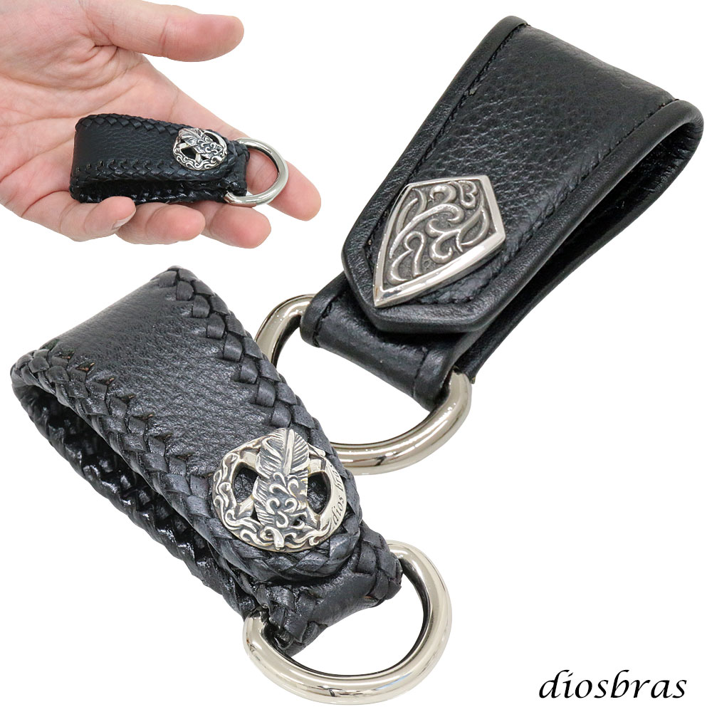 シュリンクレザー キーホルダー キーループ ベルトループ キーフラップ 牛革 コンチョ シルバー92・・・