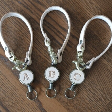 キーリール 伸びる キーホルダー イニシャル刻印 プレゼントにも メンズ レディース ヌメ革 本革 ・・・