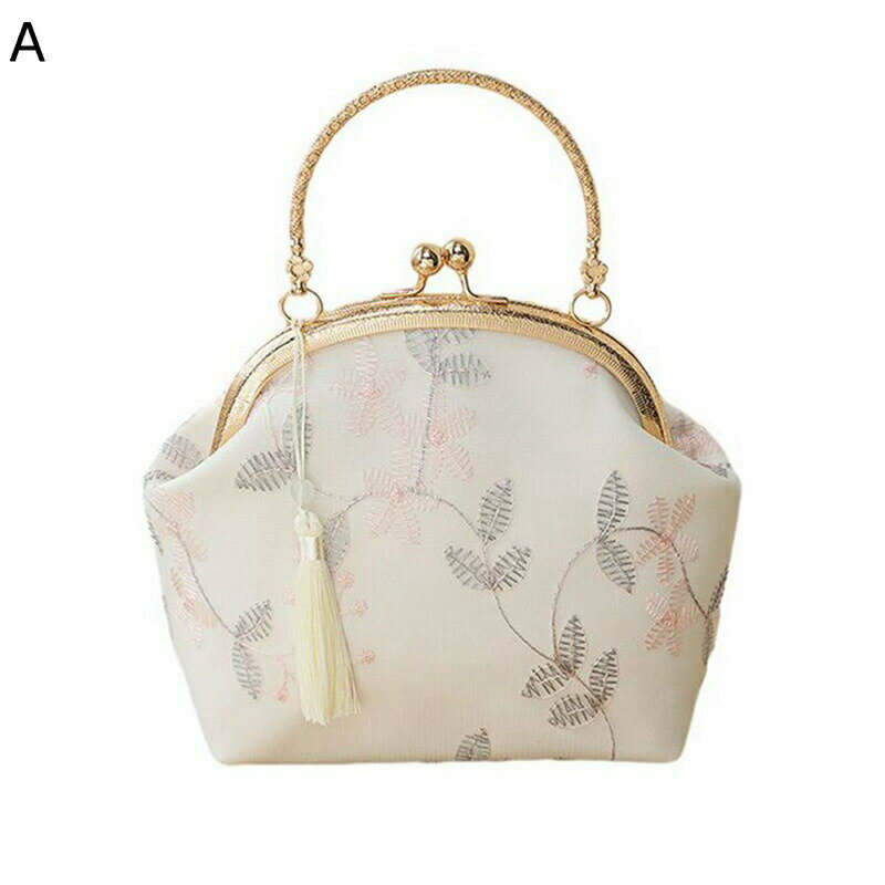 がま口ポーチ 花柄刺繍 タッセル パーティーバッグ クラッチバッグ 結婚式 ハンドバッグ 手持ち レ・・・