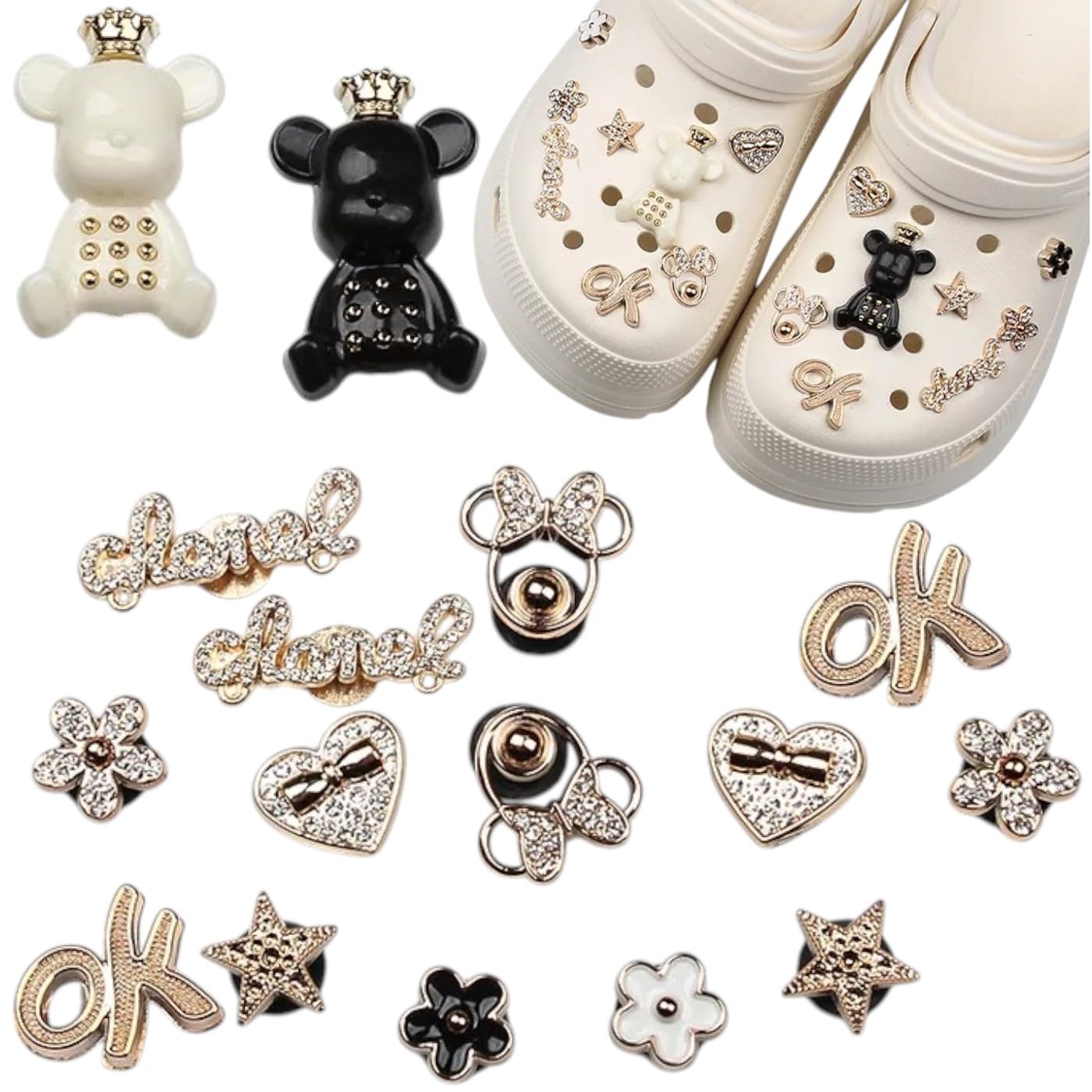 【送料無料】ベア くま ブラック ホワイト ハート フラワー 16個 クロックス ジビッツ シューチ・・・