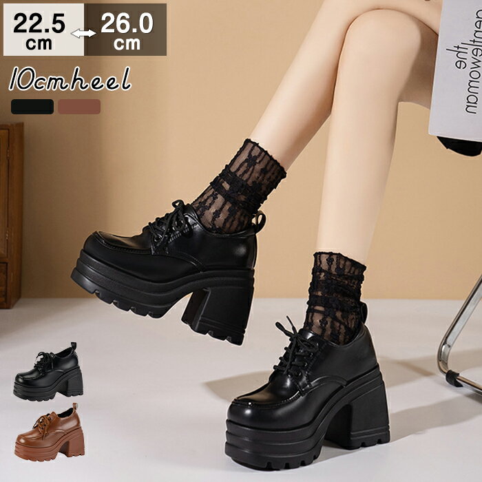 ローファー レディース 痛くない 10cmヒール 編み上げ レースアップシューズ 超厚底 シューズ ・・・