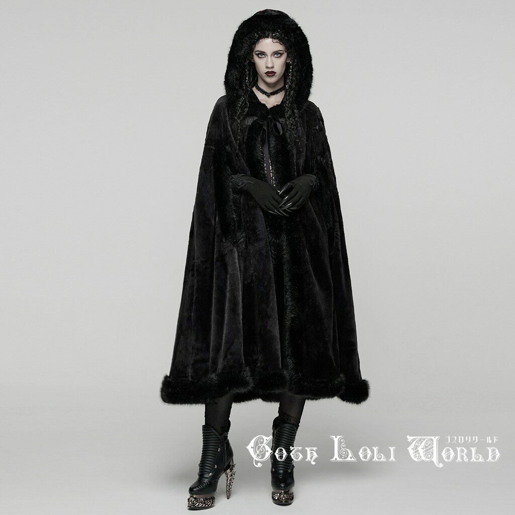 当日発送 即納 WY-1834DPF-BK ゴスロリ ファッション ファー付 ベロア マント クロー・・・