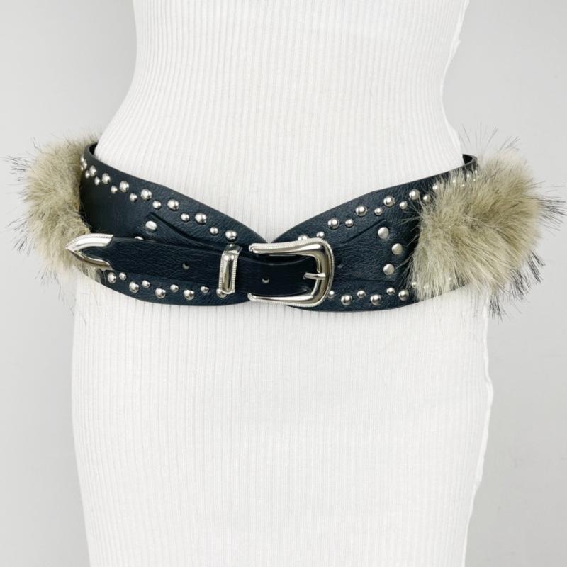 ベルト レディース フェイクファー スタッズ 幅広 ウエストマーク PUレザー 切り替え パンク ロ・・・