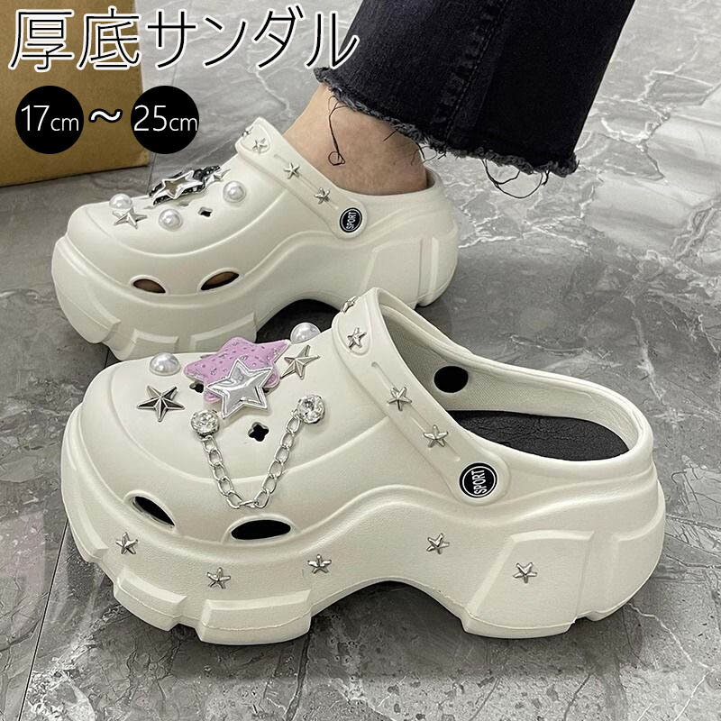 クロックス タイプ サンダル レディース チャンキーヒール フラット ラウンドトゥ 厚底 EVA素材・・・