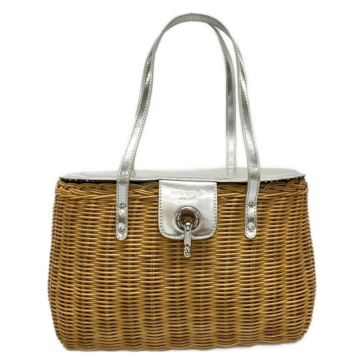 【中古】Kate spade(ケイトスペード) ハンドバッグ かごバッグ ライトブラウン×シルバー ・・・