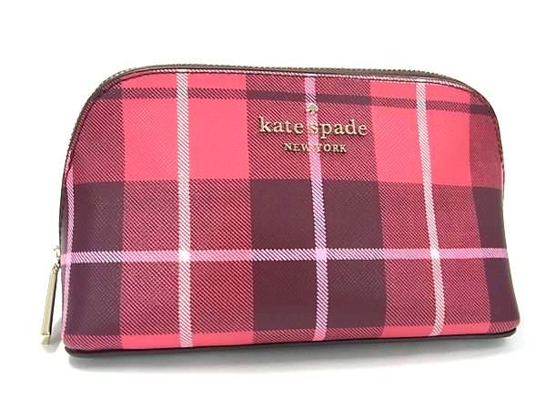 ■美品■ kate spade ケイトスペード WLR00650 PVC チェック柄 メイクポーチ ・・・