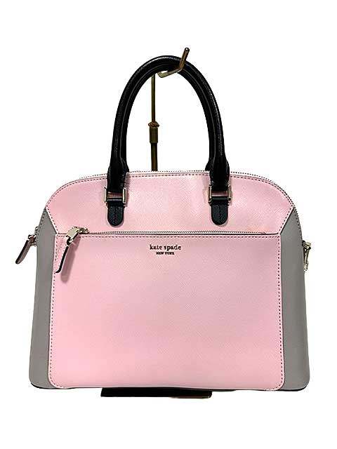 ケイトスペード レザー ピンクベージュ×ホワイト系 ノットカラーブロック ミディアムサッチェル 2W・・・