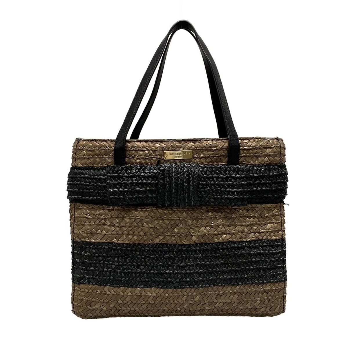 【中古】Kate spade(ケイトスペード) トートバッグ リボン/かごバッグ ブラウン×黒 レザ・・・