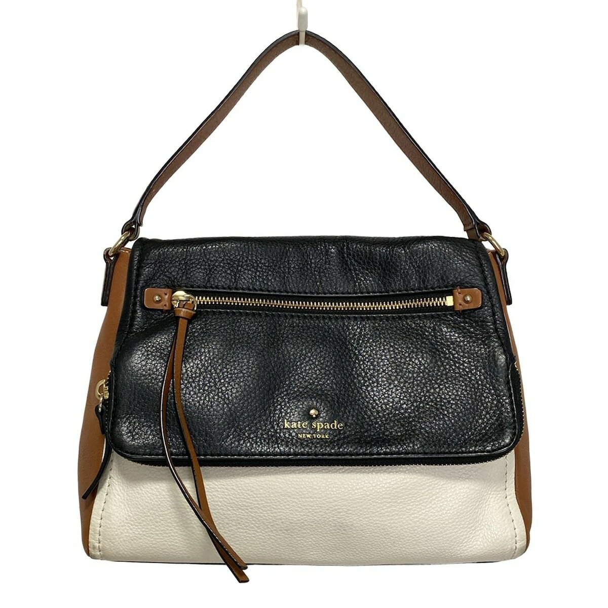 【中古】Kate spade(ケイトスペード) ハンドバッグ 黒×アイボリー×ダークブラウン レザー