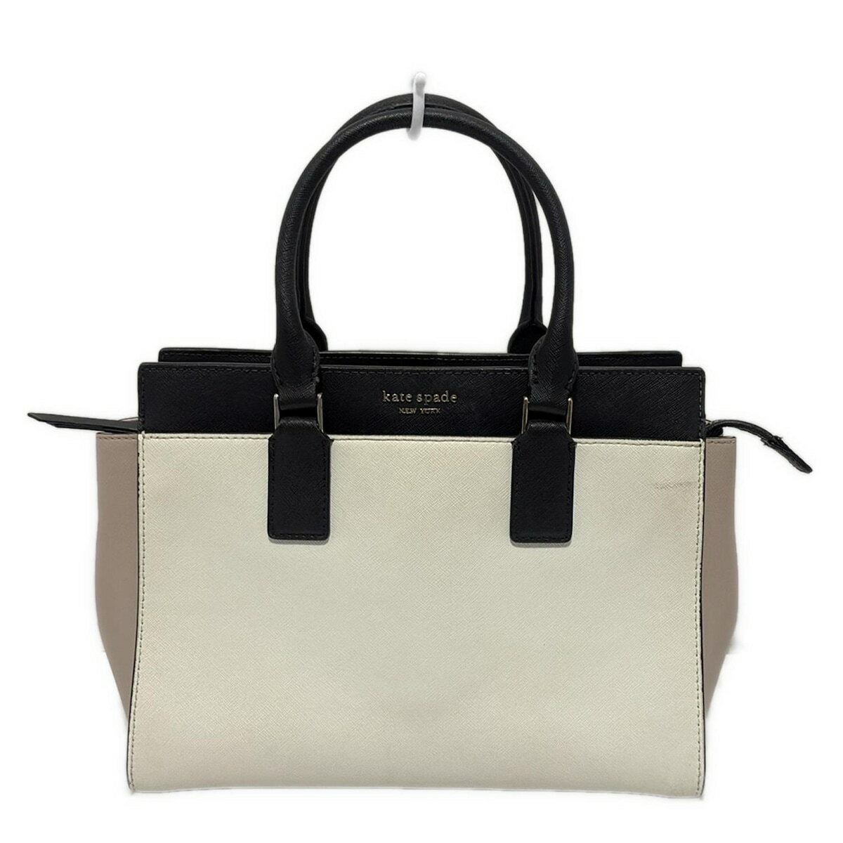 【中古】Kate spade(ケイトスペード) ハンドバッグ アイボリー×黒×ピンクベージュ レザー