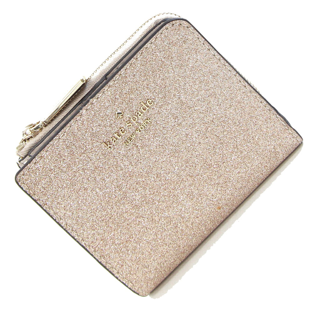 ケイトスペード 二つ折り財布 シミ— K4711 ローズゴールド グリッターファブリック 中古 コン・・・