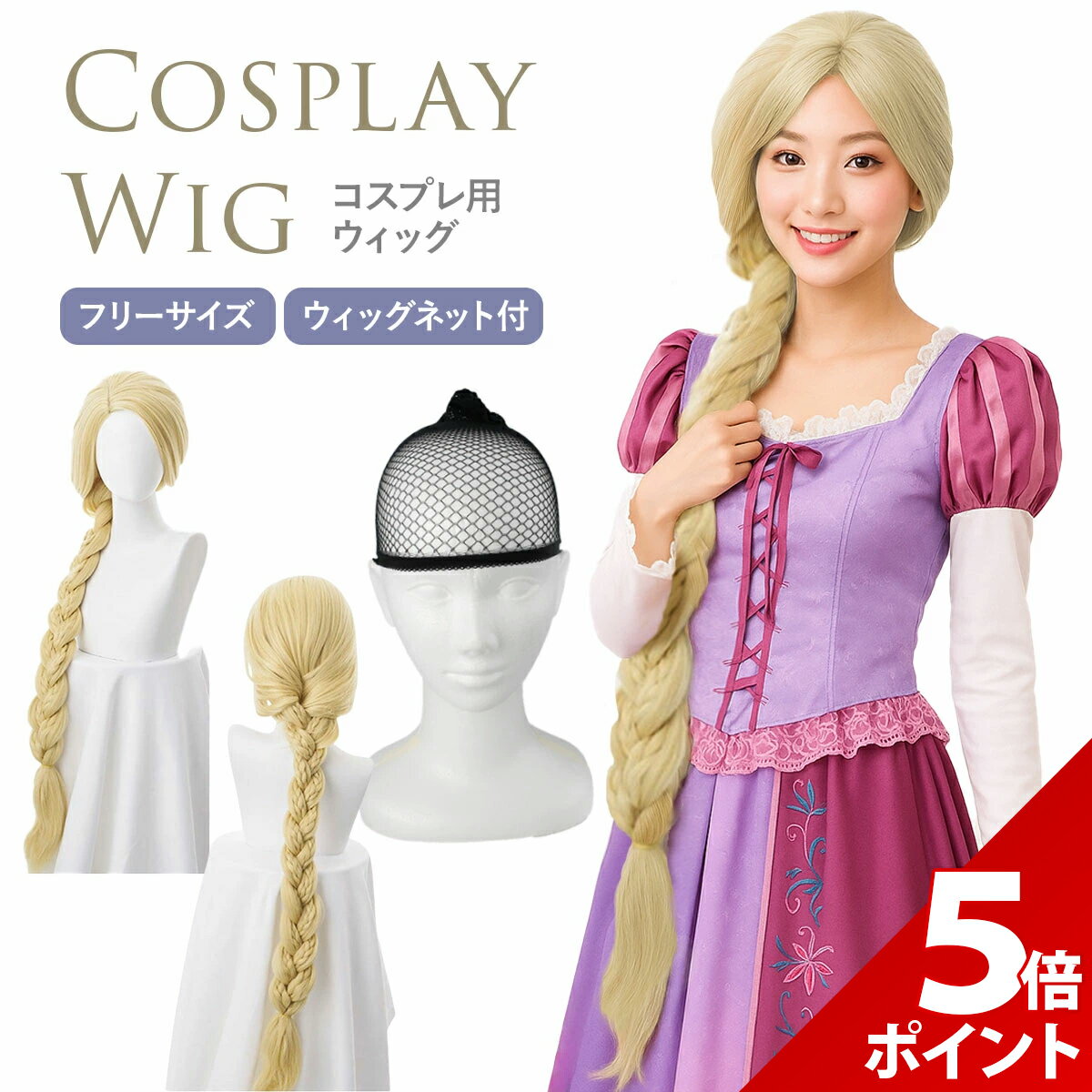 【マラソン限定★P+5倍!】ラプンツェル ウィッグ コスプレ プリンセス 付け毛 金髪 ロング かつ・・・