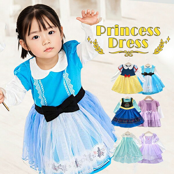 プリンセス ドレス お姫様 ドレス 子供 子ども キッズ 長袖 ワンピース アナ ラプンツェル シン・・・
