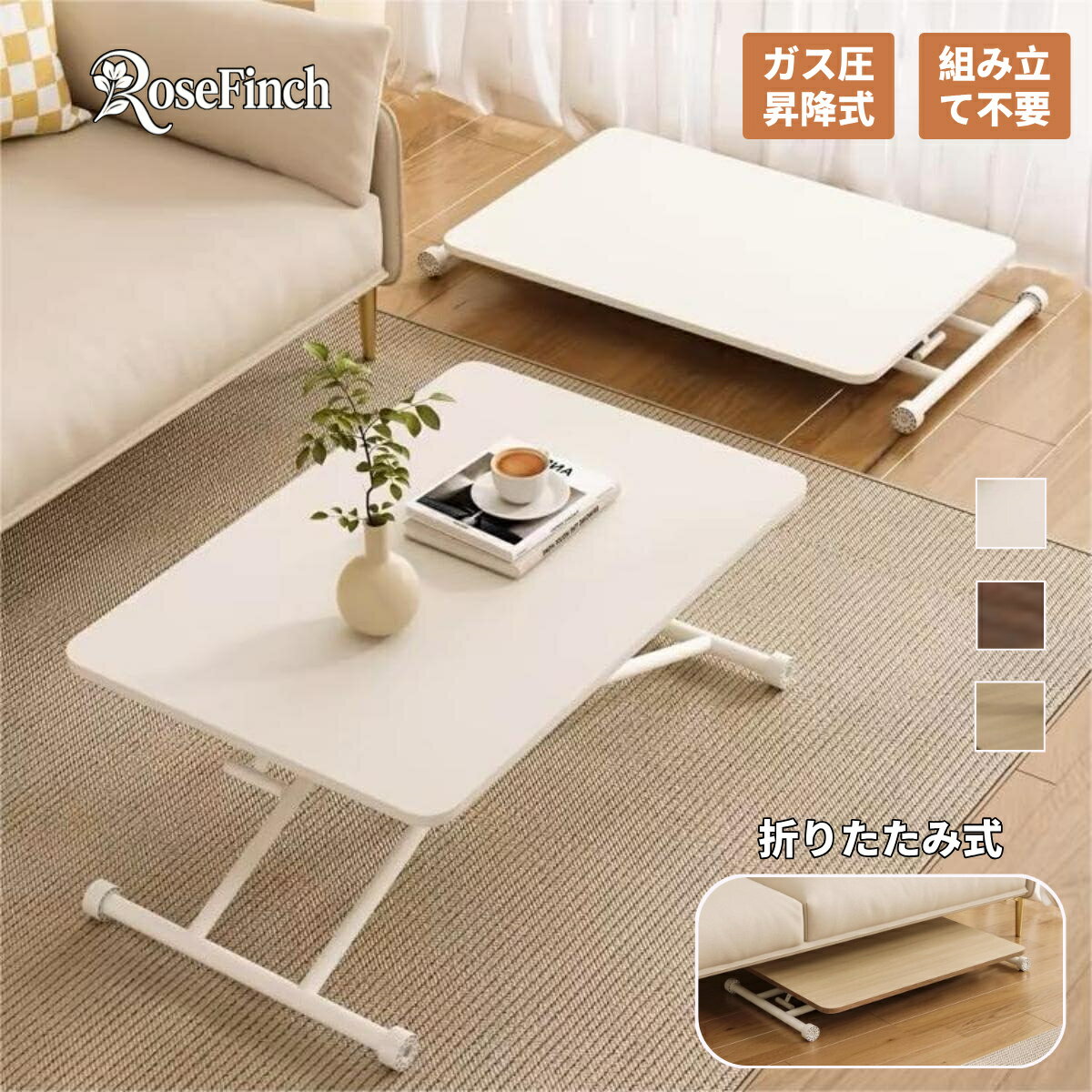 センターテーブル ローテーブル 折りたたみ キャスター付き ガス圧昇降式テーブル 完成品 昇降式テー・・・