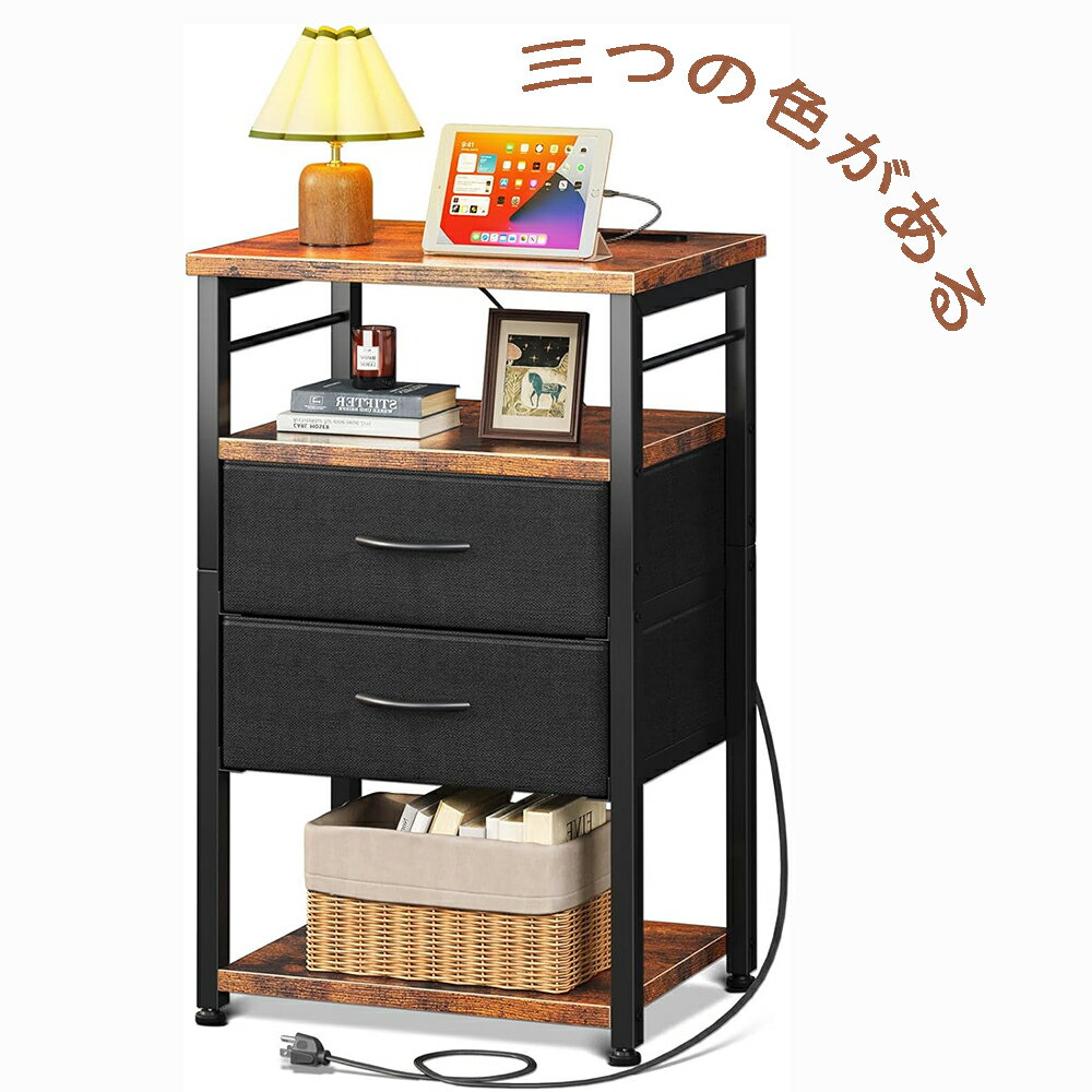 サイドテーブル ナイトテーブル ベッドサイドテーブル コンセント付き 40×30×70cm 引き出し・・・
