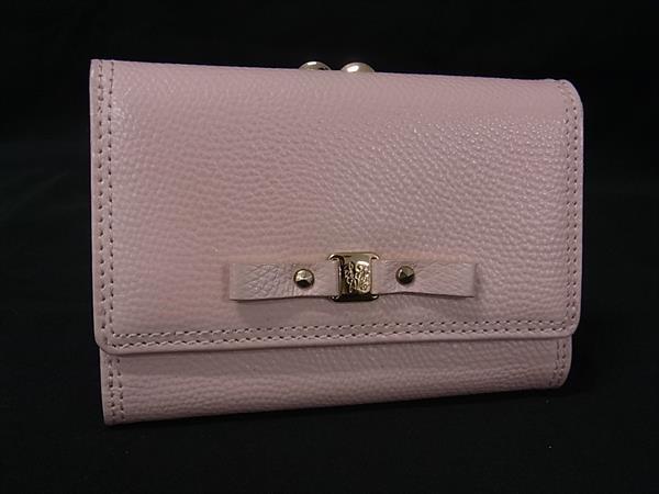 ■美品■ Samantha Thavasa サマンサタバサ レザー リボン がま口 三つ折り 財布 ・・・