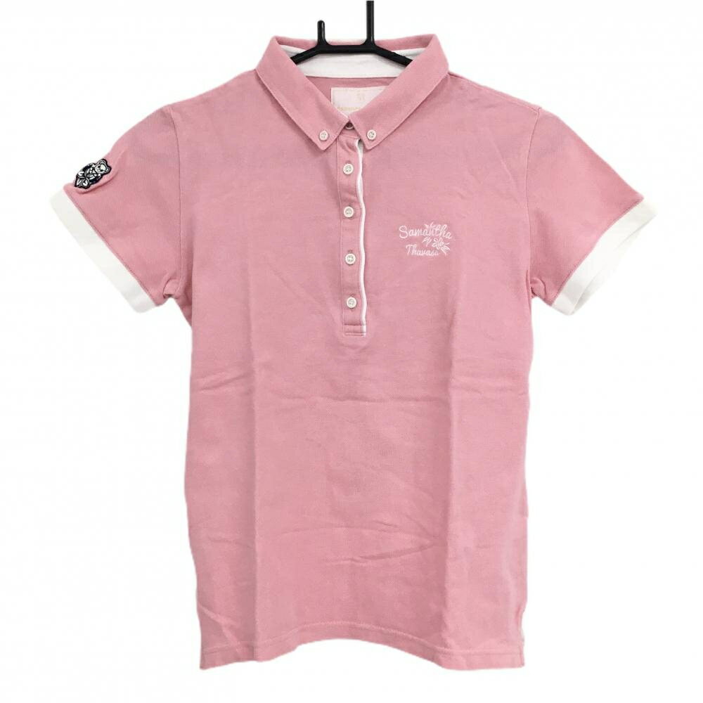 【美品】サマンサタバサUNDER25 半袖ポロシャツ ピンク×白 背面プリント ベアワッペン レディ・・・