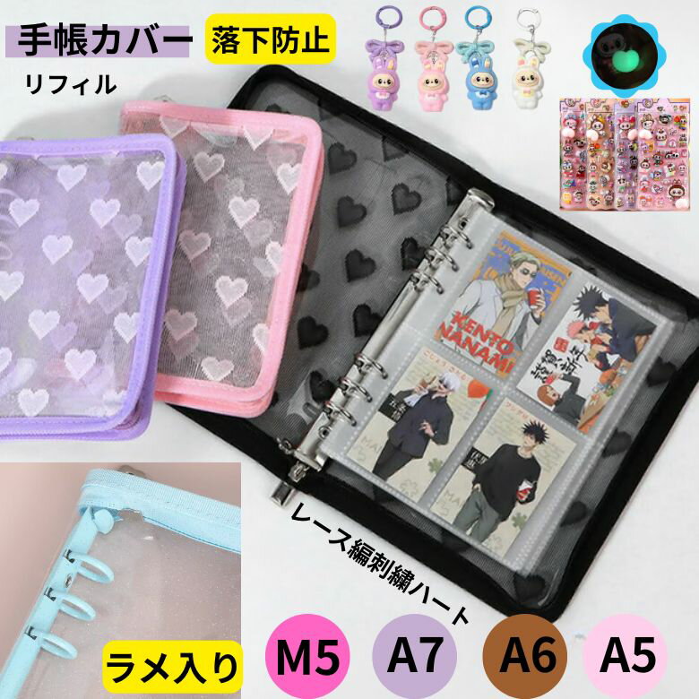 2タイプ レースバインダー刺繍ハート labubuキーホルダーミニチャーム ぷにぷにシール 貯金手帳・・・