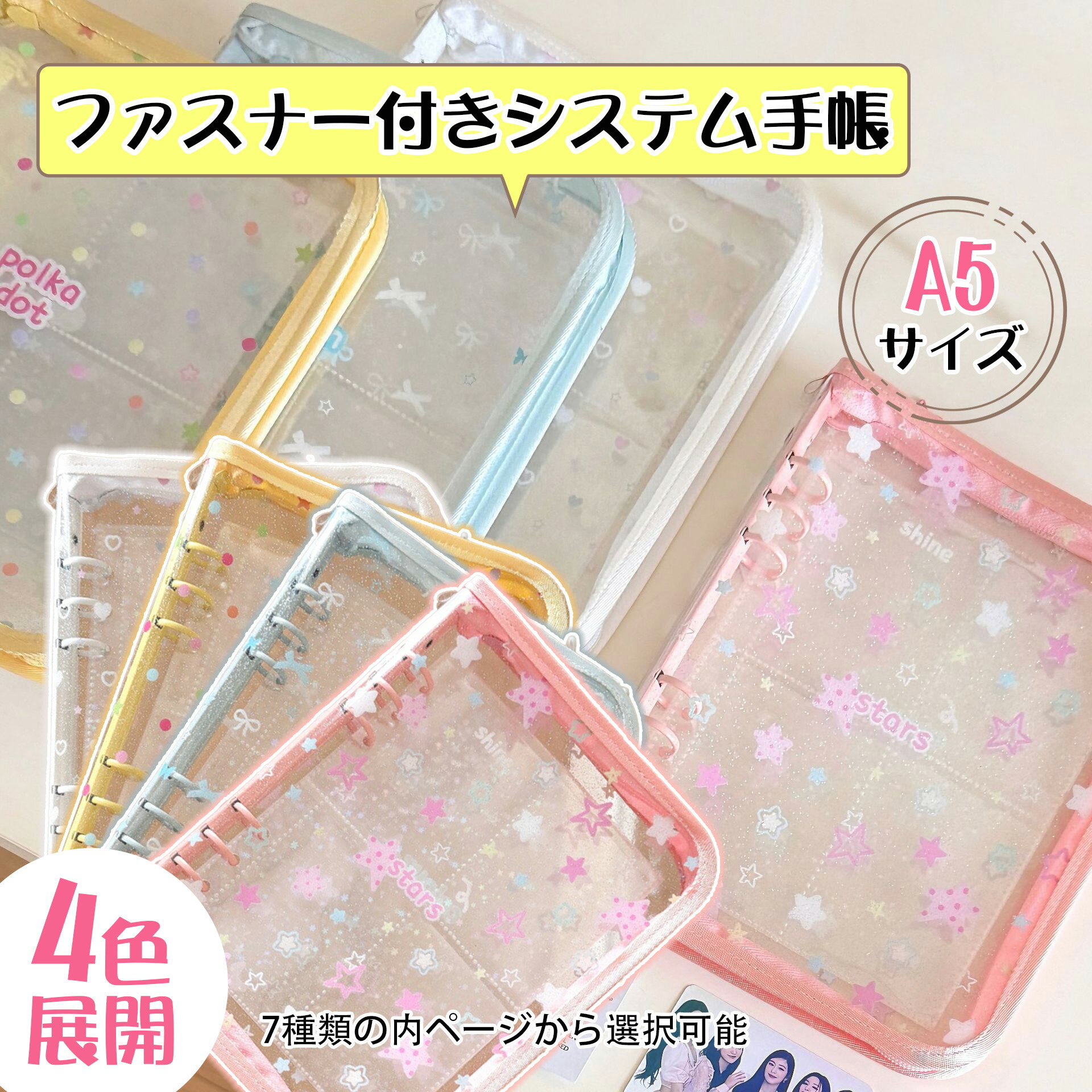 \4色展開・7種リフィル対応/6穴 システム手帳 クリア ファスナー付き バインダー アルバム 手帳・・・