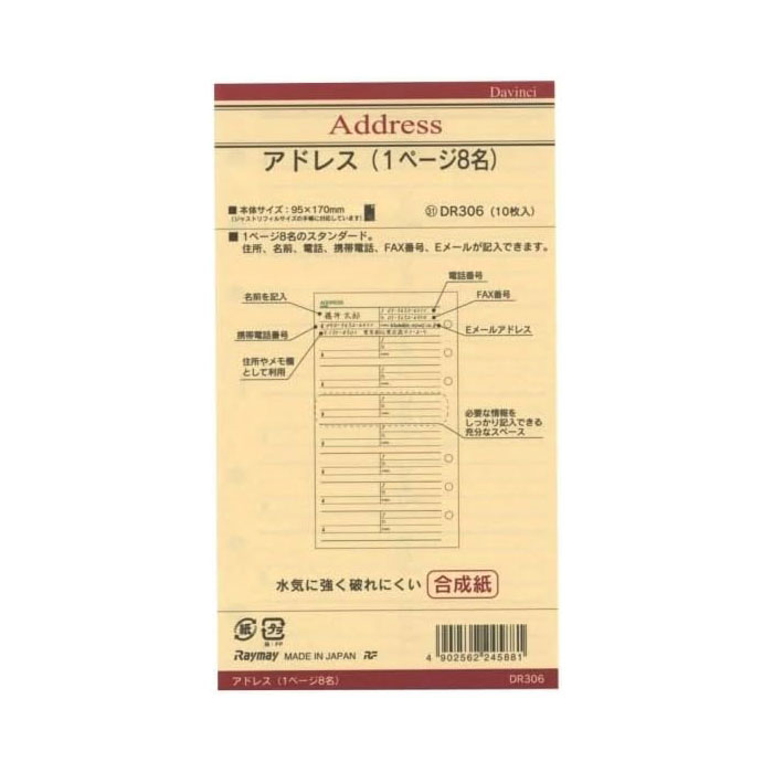 聖書サイズ リフィル レイメイ アドレス帳 1ページ 8名【DR306】10枚入り 6穴システム手帳・・・