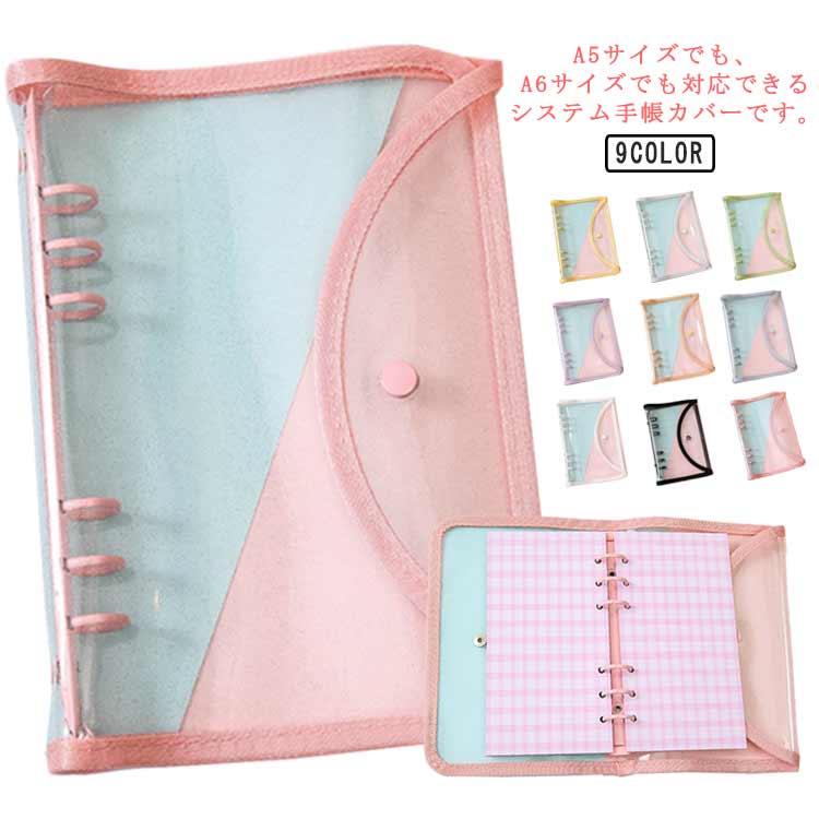 PVC製 透明 オフィス システム手帳カバー A5 手帳カバー ルーズリーフ式 軽量 防水 バインダ・・・