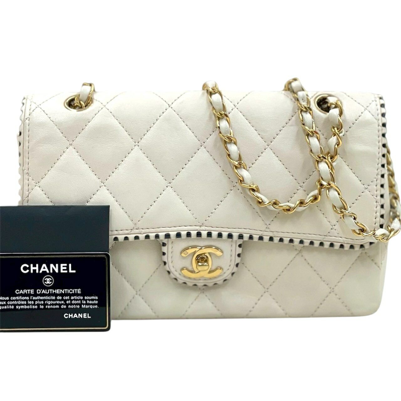 【中古】シャネル ラムスキン マトラッセ アイボリー ショルダーバッグ ゴールド金具 シングルフラッ・・・