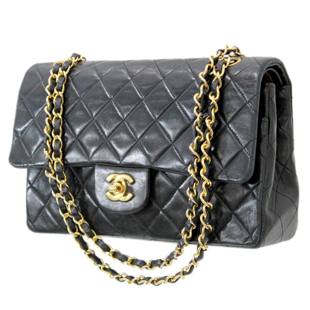 【中古】 CHANEL/シャネル マトラッセ ダブル チェ—ンショルダーバッグ カーフスキン ブラッ・・・
