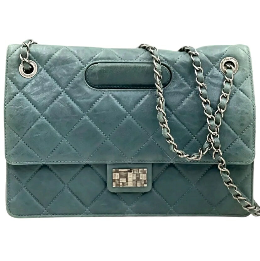 【中古】シャネル マトラッセ 2.55 ラムスキン 2way ショルダーバッグ ブルーグレー シルバ・・・
