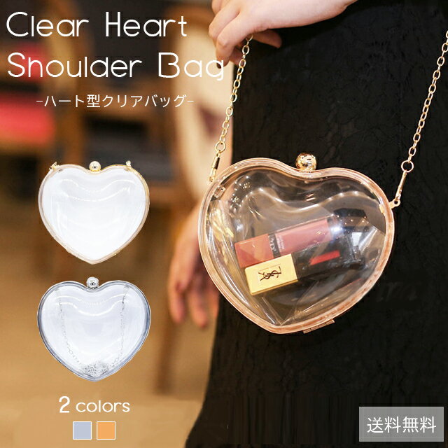 【送料無料】ショルダーバッグ クリア ハート 型 レディース バッグ がま口 チェーン 付き 透明 ・・・