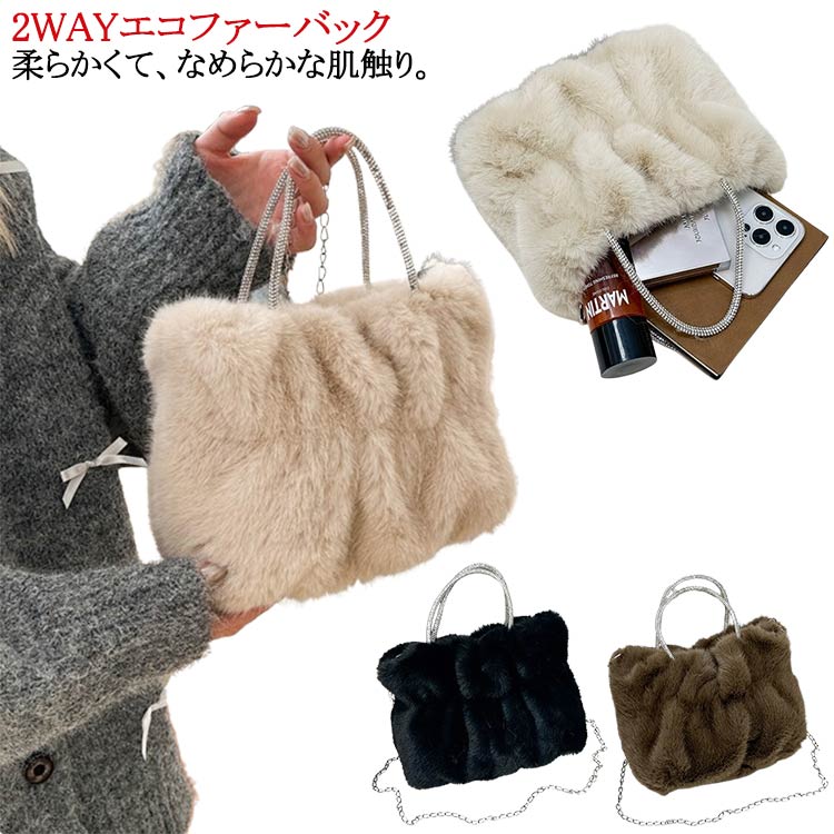 冬 ふわふわファーバックバッグ スマートフォン 革 ハンドバッグ 斜め掛け レザーバッグ 2wayエ・・・