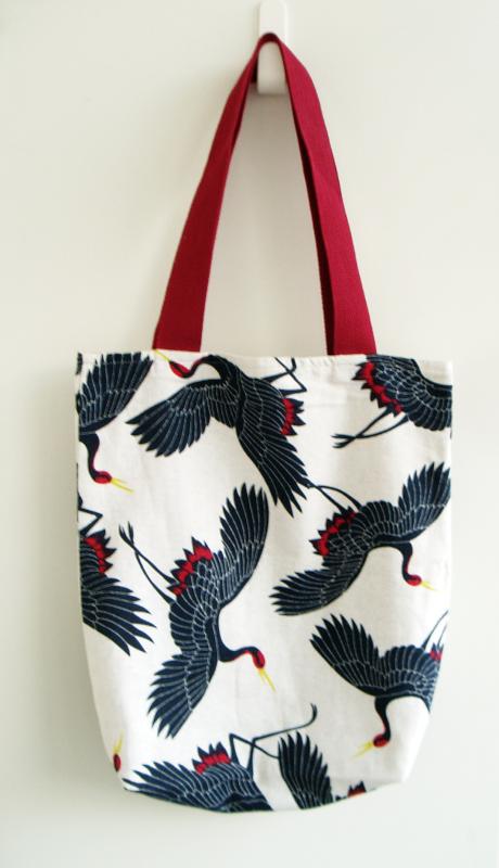 ハンドバッグ トートバッグ おしゃれ クラシカル 白黒 鶴 エスニック 縦型 中大 綿麻 バッグ シ・・・