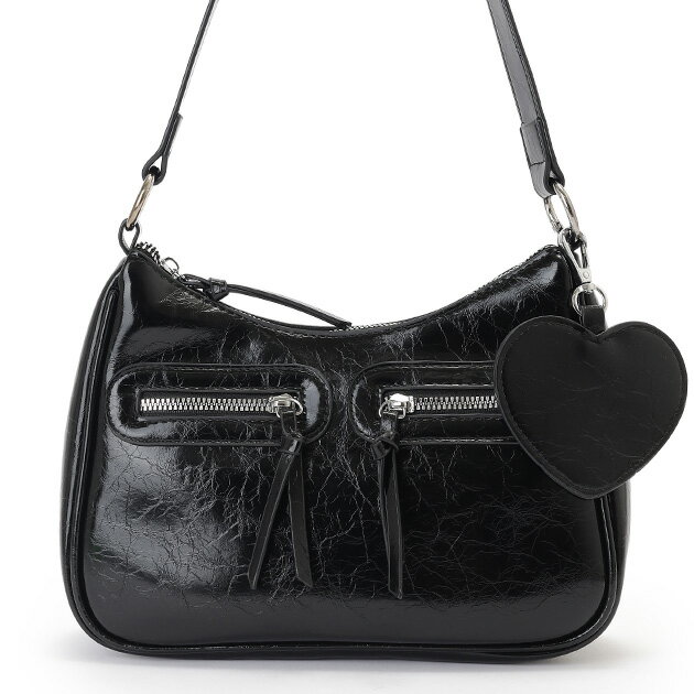 レザー調 ハート チャーム付き 2WAY ショルダーバッグ 女性 レディース ショルダー 肩掛け ハ・・・