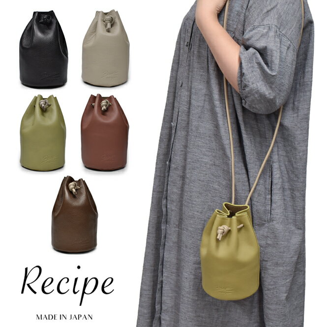 Recipe レシピ バッグ 革 日本製 レディース 斜めがけ ハンドバッグ 巾着バッグ 小さめ ブ・・・